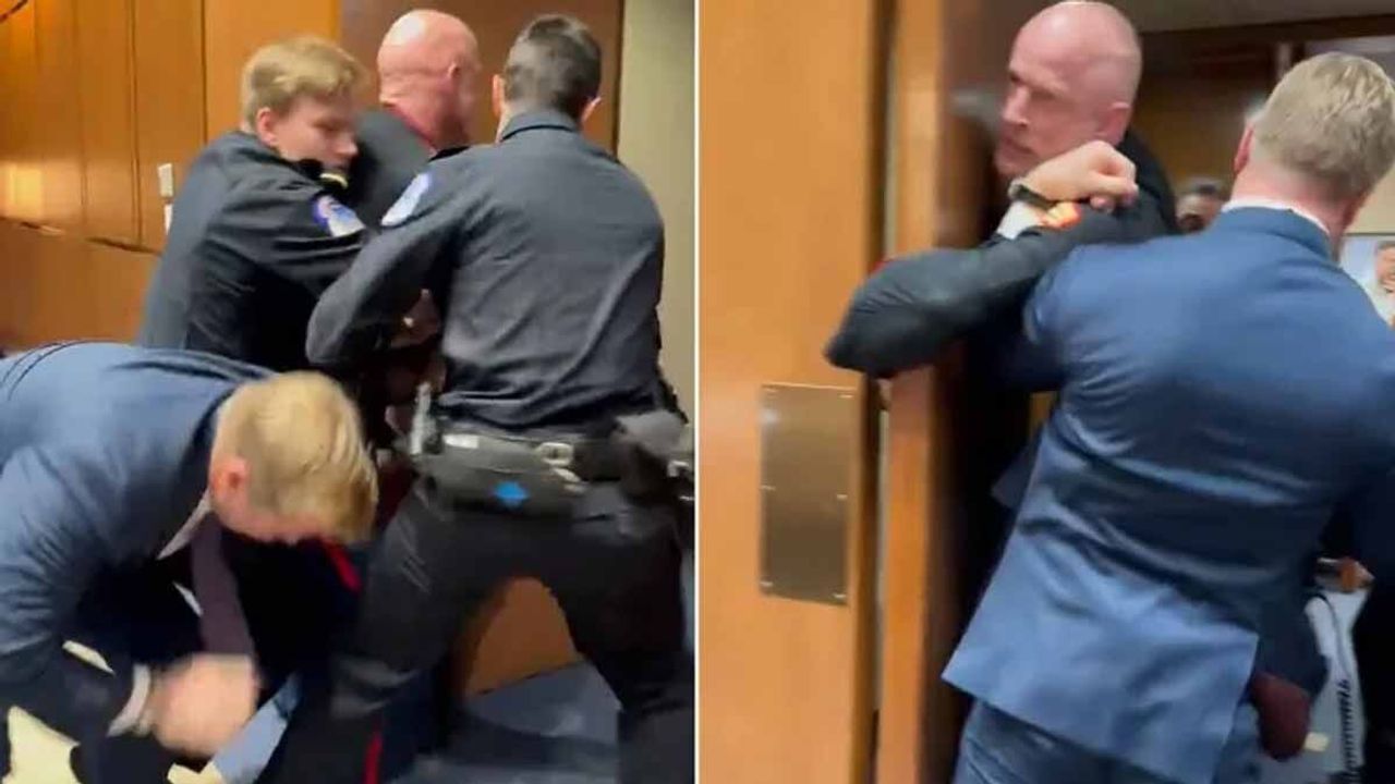 Protestonun ardından Kongre polisi (Capitol Police) McGinnis'i zorla salondan çıkarmak için müdahale etti. Ancak eski asker şiddetle direnerek kapı pervazına tutundu.
