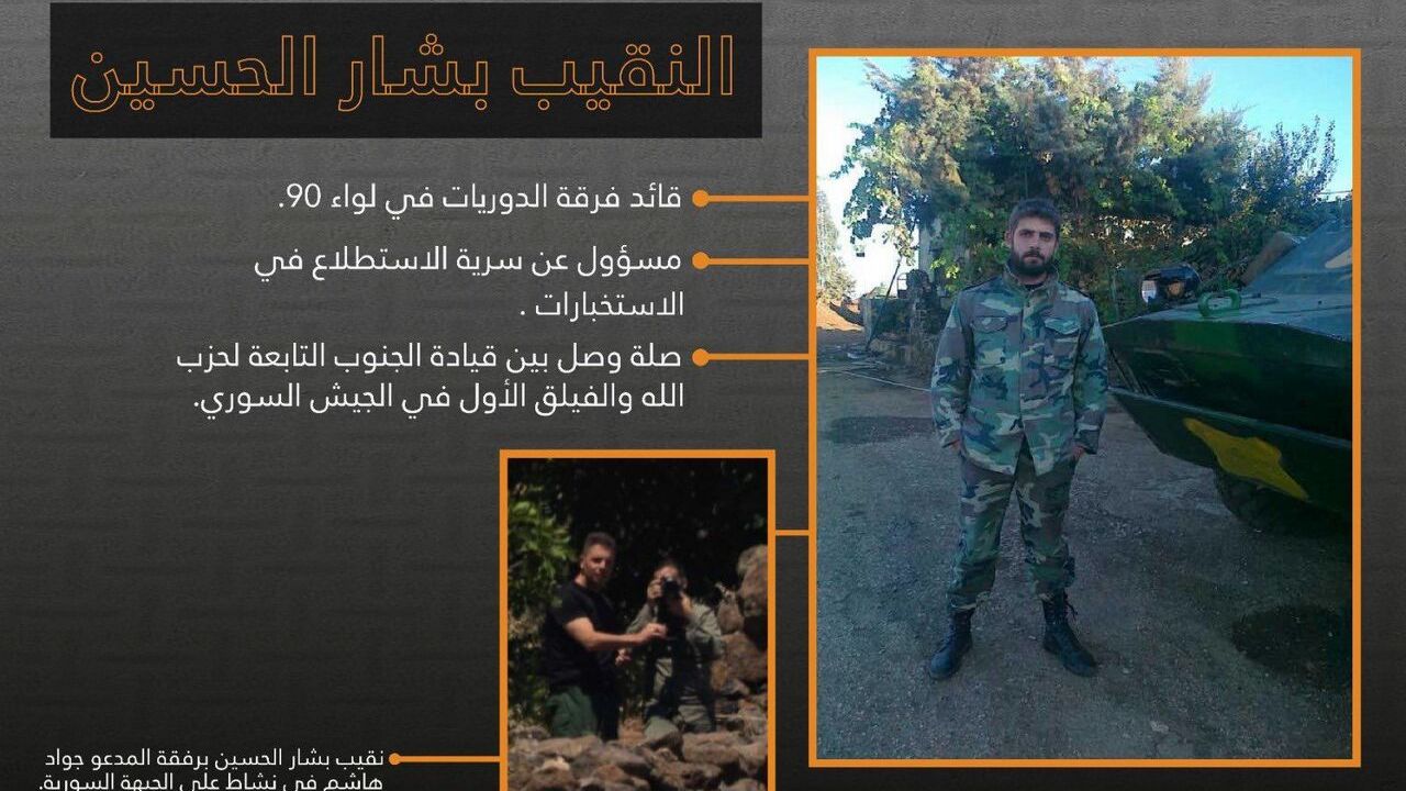 Bu çerçevede, Suriye'nin güneyindeki vatandaşları milislerle iş birliği yapmamaları konusunda uyaran ve Suriyeli subayları da ikaz eden on binlerce broşür dağıtıldı. Yüzbaşı Beşşar el-Hüseyin'in adının ve fotoğrafının yayınlanması, kendisi ve diğerleri için bir uyarı ve tehdit niteliğinde. Geçen yıl, el-Hac Haşim ve oğlu Cevad'ın isimleri ve fotoğrafları yayınlanmıştı. Bu, onlar için doğrudan bir tehdit olarak görülmüştü.