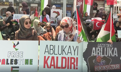 Filistin'e destek mesajları içeren pankartların açıldığı etkinlikte "Nehirden denize özgür Filistin", "Katil İsrail, Filistin'den defol" sloganları atıldı.