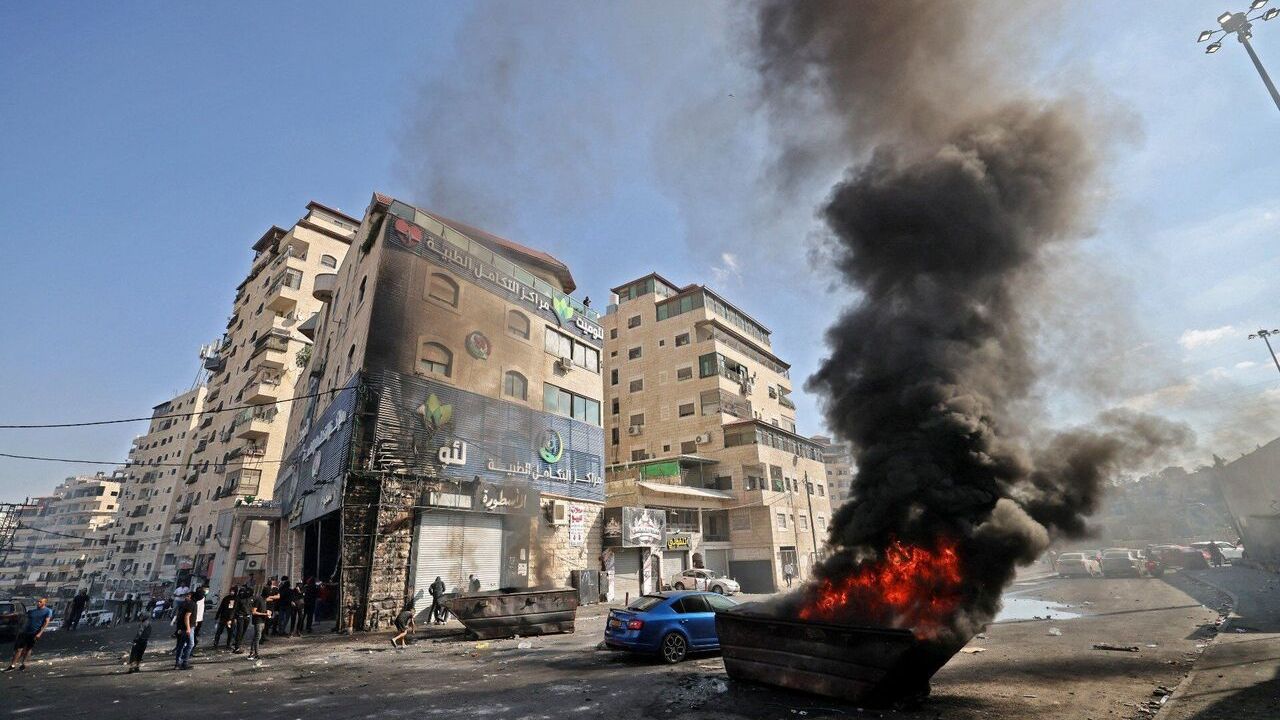 Filistinli protestocular da taş atarak ve lastik yakıp yolları kapatarak karşılık verdi.