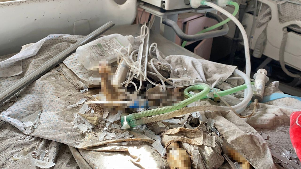 Görüntülerde, hastanenin yıkılmış duvarları, kullanılmaz hale gelmiş tıbbi ekipmanlar ve yataklar üzerinde çürümüş bebek cesetleri yer alıyor.