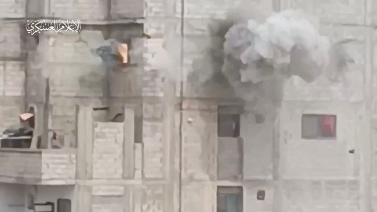 #Kassam Tugayları, Han Yunus’taki Nasır Hastanesi’nin çevresinde bir evin içinde saklanan işgalci İsrail askerlerini #TBG füzesiyle hedef aldığı anları yayınladı. 🇵🇸 pic.twitter.com/AuqCBRPAOP