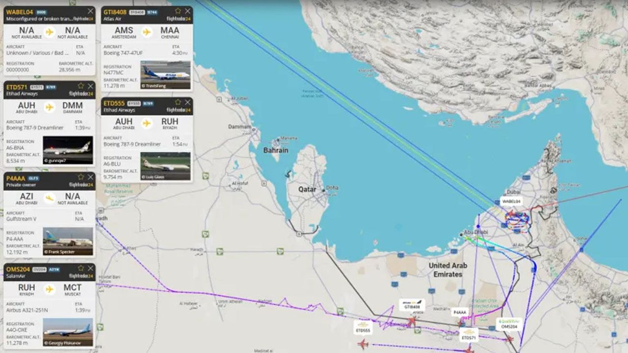 Bu müdahale uçuş takip verilerine de açıkça yansıdı. Platforma kaydedilen uçuşların incelenmesi sonucunda, BAE hava sahası içinde kısa ve tekrarlanan dairesel rotalarda uçuyormuş gibi görünen uçak vakalarının yanı sıra, zikzak çizen rotalar ve koordinatlarda ani sıçramalar tespit edildi.