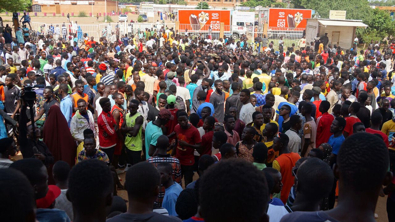 Binlerce gönüllü, Nijer'i Savunma Gönüllüleri (VDN) isimli sivil milis gücü içine kaydolmak için başkent Niamey'deki General Seyni Kountche Stadyumu'nda toplandı.