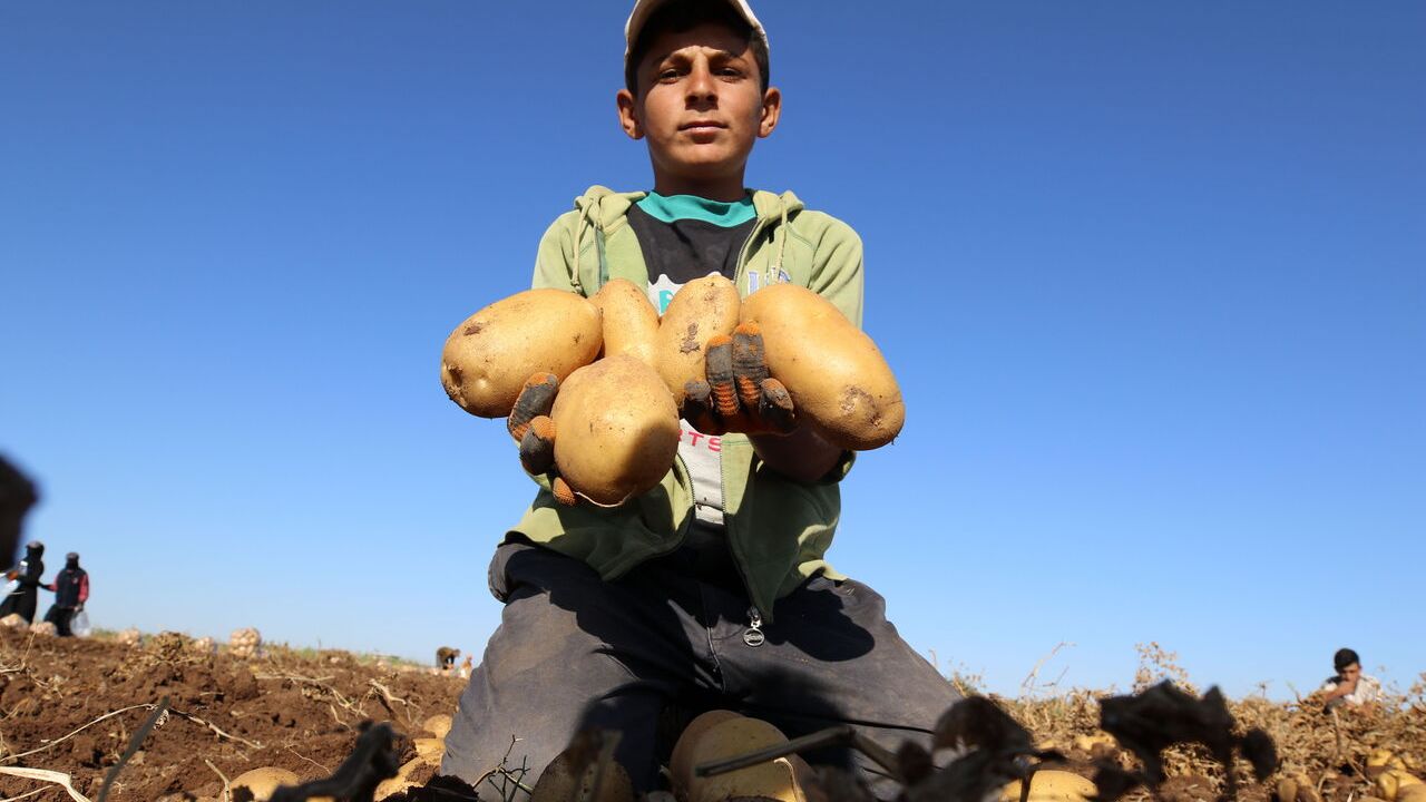 Fırat Kalkanı Harekatı'yla terörden arındırılan bölgelerde, tarım işçileri tarafından özenle toplanan patatesler, çiftçilerin yüzünü güldürdü.