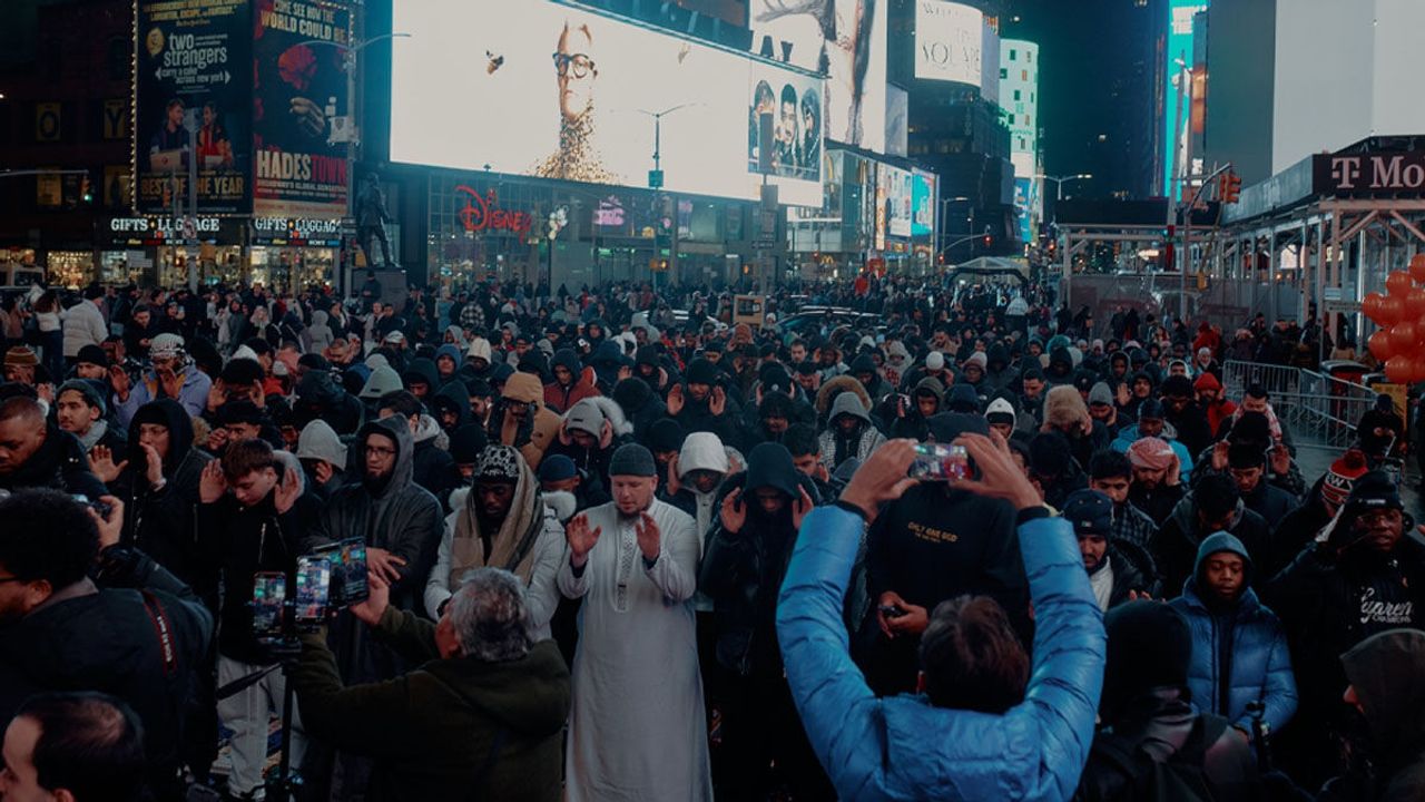 Amerikalı Müslüman içerik üreticisi "WayofLifeSQ" tarafından organize edilen etkinlikte, New York'un simgesi Times Meydanı'nda yüzlerce Müslüman iftar ve Teravih namazı için bir araya geldi. Broadway ve 7. Cadde kesişiminde 1.500 kişiye ücretsiz yemek dağıtılırken, katılımcılara farklı dillerde 1.200 adet Kur'an-ı Kerim hediye edildi.