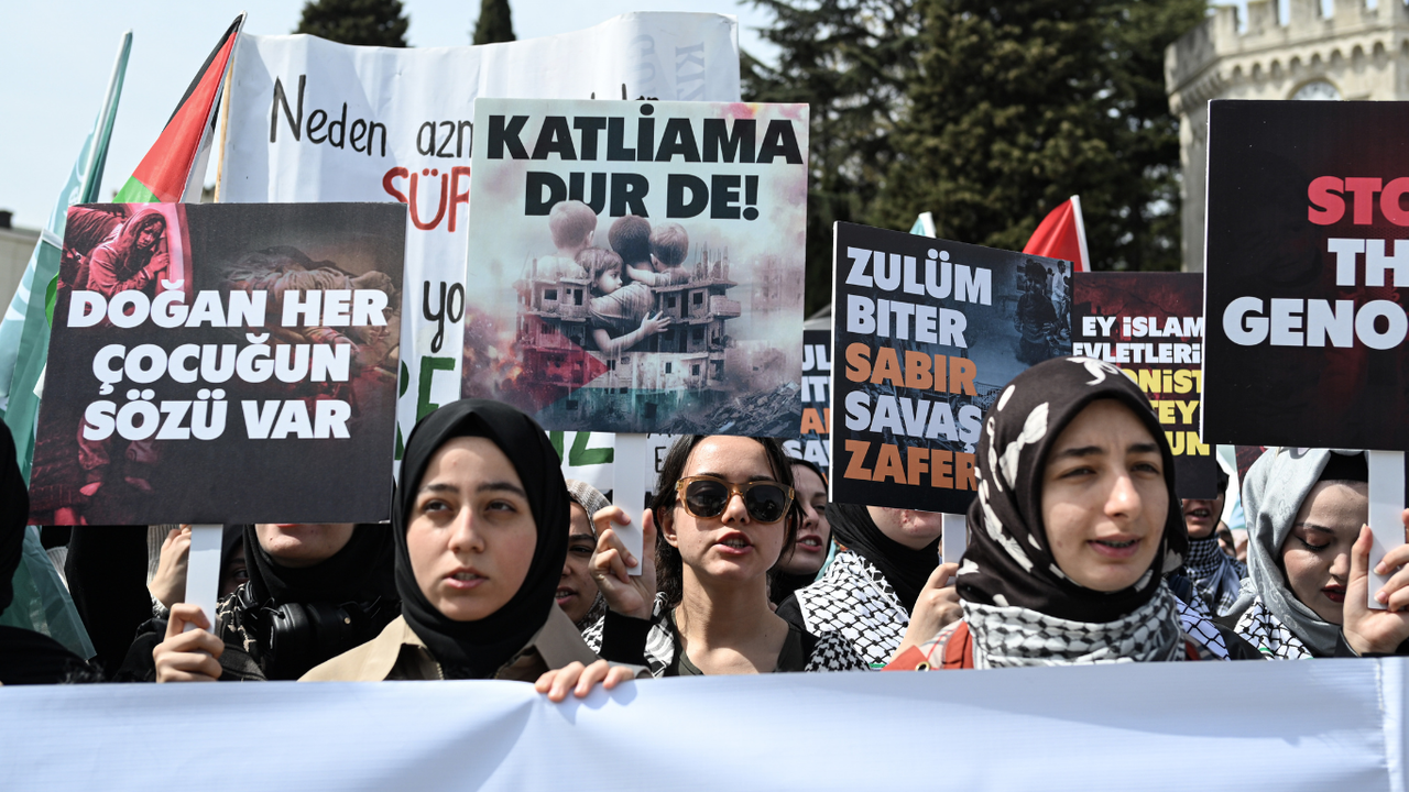 İstanbul'da farklı üniversitelerde eğitim gören öğrencilerinden oluşan grup, cuma namazının ardından "Kampüsler Gazze İçin Ayakta" eylemi için meydanda toplandı.