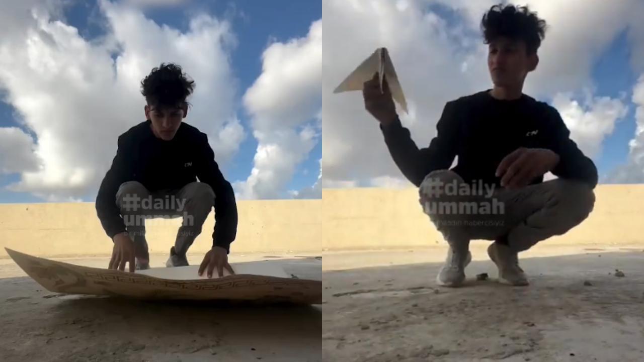Gazze’de bir genç, İsrail’in savaş uçaklarına karşı semaya kağıttan uçak uçurdu. İsrail’in hava saldırıları devam ederken gerçekleşen bu eylem, bölgedeki gerilimin ortasında dikkat çekti.
