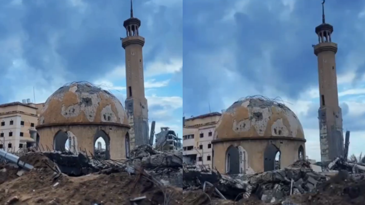 İşgalci İsrail'in yıktığı Gazze'deki El-Kâtiba Camii'nin enkazından ezan sesi yükseldi. Harabeye dönen caminin kalıntıları arasından duyulan ezan, bölgede büyük bir duygusal etki yarattı.