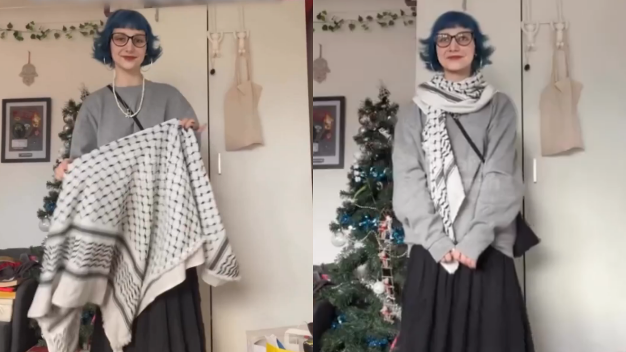 Londra’da bir genç, Filistin’in direniş ve özgürlük simgelerinden biri olan kefiyenin farklı şekillerde nasıl takılabileceğini göstererek dikkat çekti.